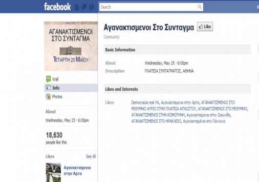 Πρόκειται για μία ειρηνική εκδήλωση διαμαρτυρίας στα ισπανικά πρότυπαπου συγκίνησε πολλούς χρήστες της δημοφιλούς σελίδας κοινωνικής δικτύωσης. Η σελίδα στην είχε φτάσει...