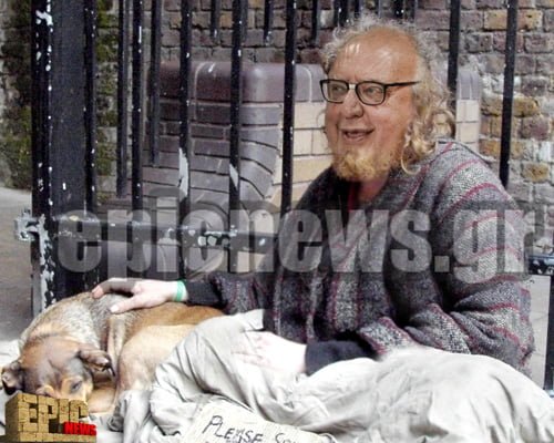 Ο αντιπρόεδρος του ΠΑΣΟΚ εμφανίστηκε στην πλατεία Συντάγματος, εμφανώς καταβεβλημένος, με ατημέλητο look και αινιγματικό, απλανές βλέμμα, παρέα με ένα αδέσποτο σκύλο. Μέχρι στιγμής η ανταπόκριση του κόσμου είναι συγκινητική και πλήθος κόσμου σπεύδει να προσφέρει τον οβολό του προς τον άπορο άνδρα.