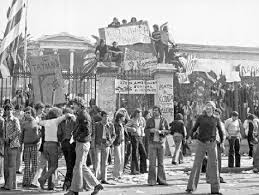 Στις 14 Νοεμβρίου 1973 φοιτητές του Πολυτεχνείου αποφάσισαν αποχή από τα μαθήματα και άρχισαν διαδηλώσεις εναντίον του στρατιωτικού καθεστώτος. Καθώς οι αρχές παρακολουθούσαν αμέτοχες, οι φοιτητές που αυτοαποκαλούνταν «Ελεύθεροι Πολιορκημένοι», οχυρώθηκαν μέσα στο κτίριο της σχολής επί της οδού Πατησίων και ξεκίνησαν τη λειτουργία του ανεξάρτητου ραδιοφωνικού σταθμού του Πολυτεχνείου.