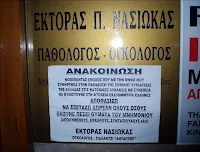 Αιφνιδιάστηκε ο Έκτορα Νασιώκας όταν πρωί πρωί ερχόμενος στο ιατρείο του, αντίκρισε μια μεγάλη αφίσα.Ο πρώην βουλευτής του ΠΑΣΟΚ και πια γιατρός....(παθολόγος- ογκολόγος) ,έπεσε θύμα φάρσας από...άγνωστο άτομο το οποίο είχε κολλήσει μια ανακοίνωση στην πόρτα του ιατρείου του στην Λάρισα, στην οποία έγραφε μεταξύ άλλων : Αποφασίζω να εξετάσω δωρεάν όλους όσους έχουνε πέσει θύματα του μνημονίου…