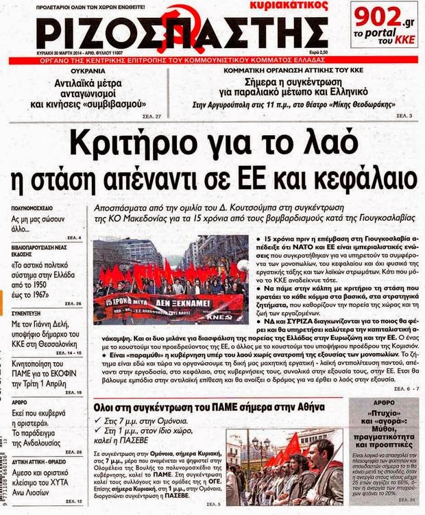 Διαβάστε στο zouzouni news σε υψηλή ανάλυση όλες τις Κυριακάτικες εφημερίδες που κυκλοφορούν Κυριακή 30/03/2014....