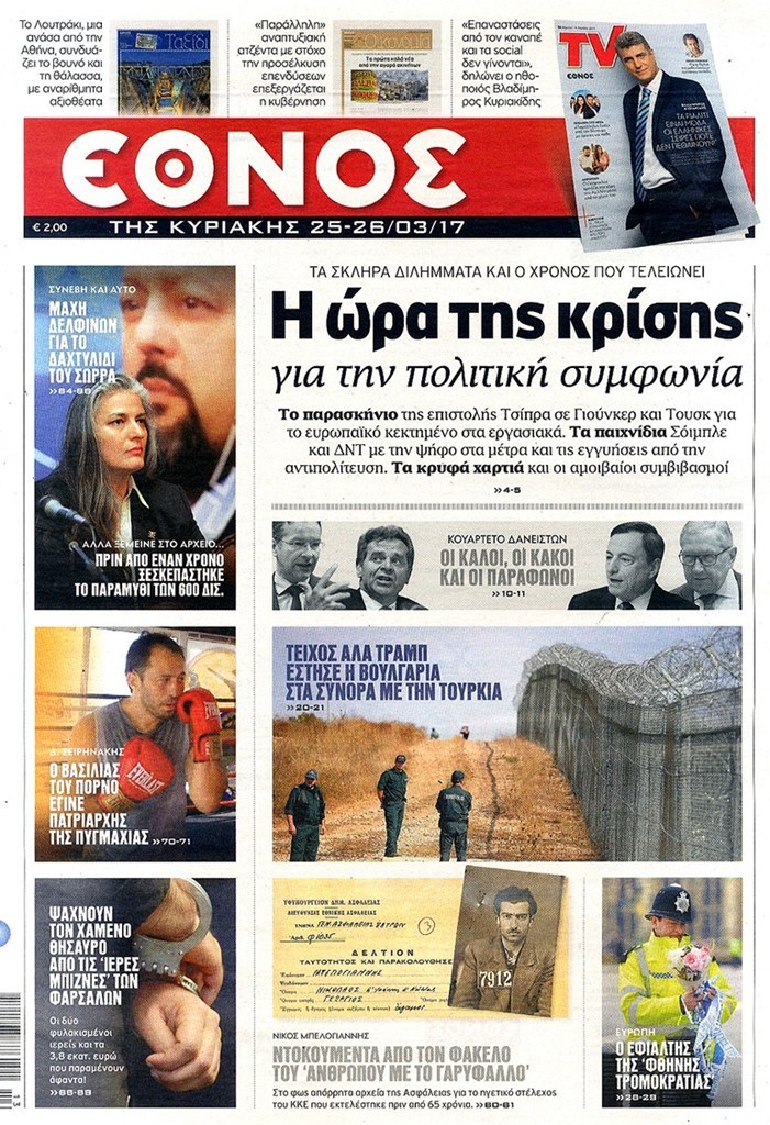 Διαβάστε στο zouzouni news σε υψηλή ανάλυση όλες τις Κυριακάτικες εφημερίδες που κυκλοφορούν εκτάκτως Παρασκευή 24/03/2017....